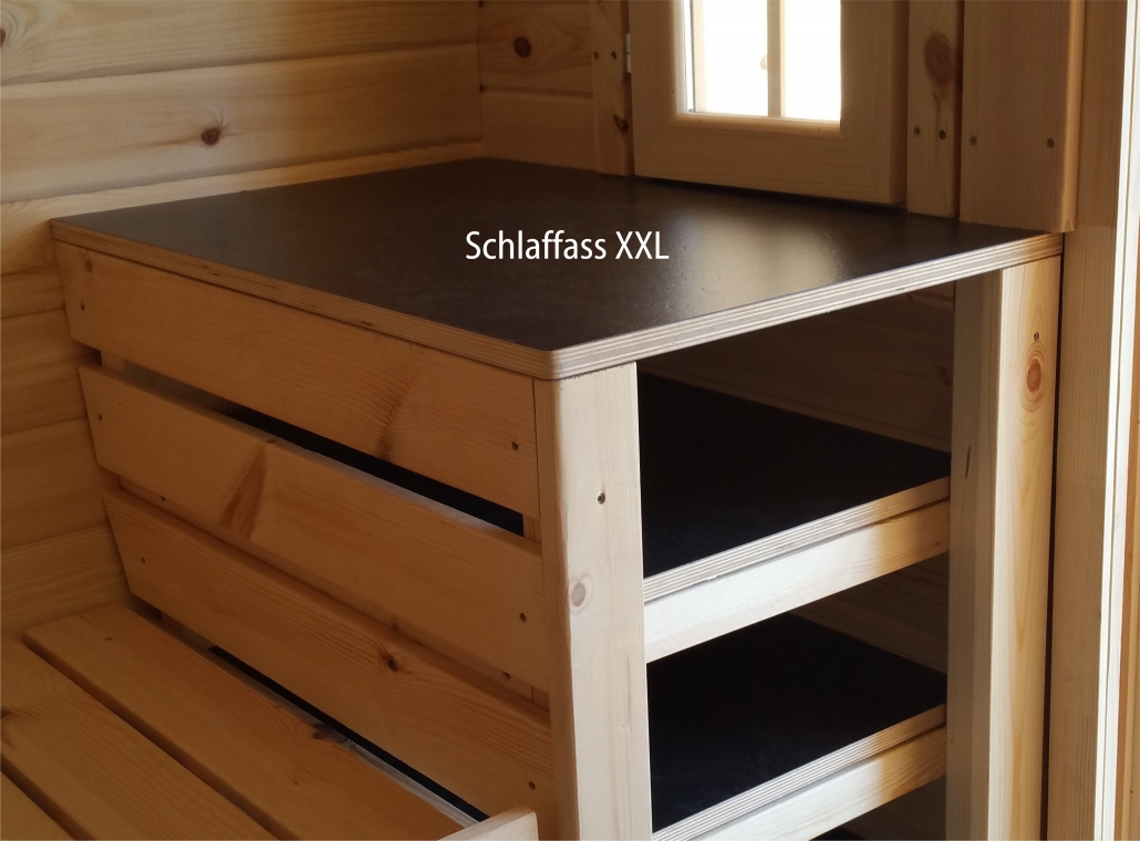 Sie sind in den Größen Standard und XXL verfügbar. Die beiden Fassgrößen unterscheiden sich in der Ausstattung des Wohn- und Außenbereichs.